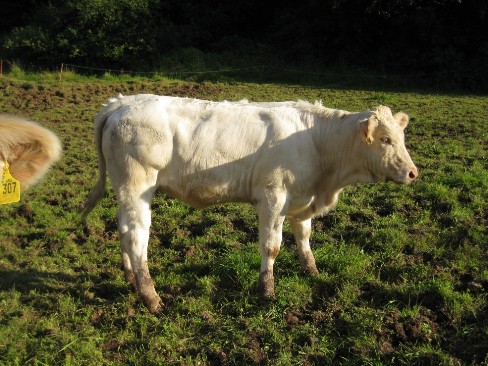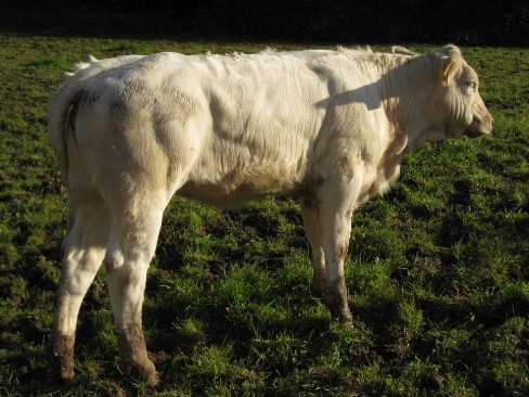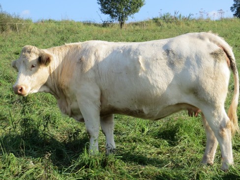 Amy ist eine große und sehr gut bemuskelte junge Färse. Ihre Mutter Abi ist neben Holdine, Hajonka und Helma eine unserer bewährten Stamm-Mutterkühe und bringt beständig sehr gut bemuskelten und rahmigen Nachwuchs. Amys Halbschwestern sind Atura und Antonie, die ihrerseits problemlos kalben und ebenfalls sehr gute Kälber bringen. Amy ist großrahmig und hat ein korrektes Fundament.