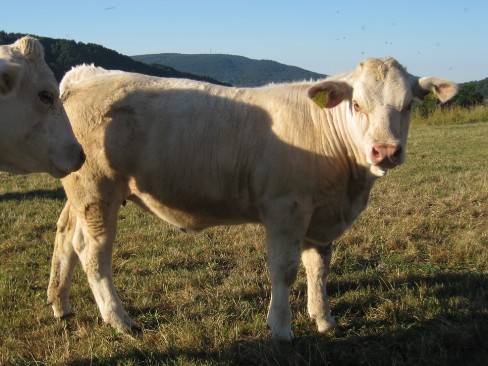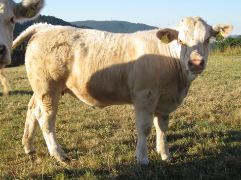 Außerordentlich gut bemuskeltes und frohwüchsiges Jungrind mit äußerst interessantem Pedigree. Väterlicherseits stammt sie von unserem bewährten Zuchtbullen Pamino (Pinay * Maliceux), mütterlicherseits von Taro. Becky ist ein sehr typvolles rahmiges Jungrind mit einer ausgeprägten Keulenbemuskelung und viel Tiefe. Sie hat sehr gute Tageszunahmen und ein korrektes Fundament mit harmonischen Übergängen.