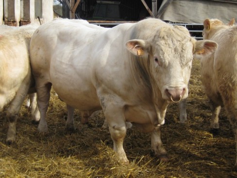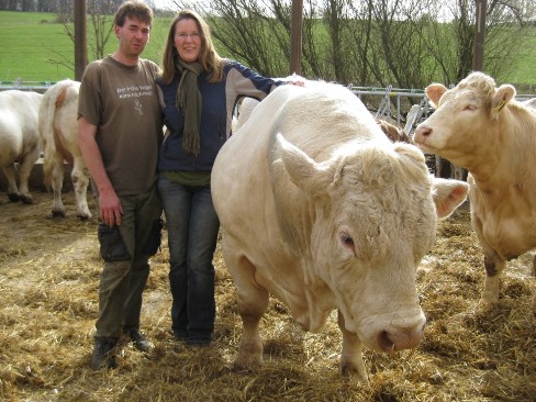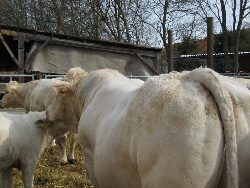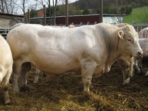 Bison stammt aus der bekannten französischen Zuchtstätte Böhmler. Wir haben Bison nach dem tragischen Unfall unseres Zuchtbullen Benni von dem Zuchtbetrieb Gries gekauft. Bison überzeugt durch seine Nachzucht, seine extreme Breite und die hervorragende Bemuskelung. Zudem punktet er mit seinem Charakter. Bison hat sich problemlos in die Kuhherde eingefügt und deckt zuverlässig mit großer Ruhe und Übersicht. Menschen gegenüber ist er stets friedlich und genießt Krauleinheiten in der Sonne.