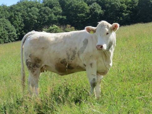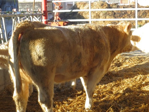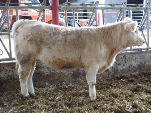 Dorina P ist ein rahmiges Jungrind mit einer guten Bemuskelung, viel Länge und Tiefe. Sie hat ein korrektes Fundament mit einer sehr guten Beckenanlage. Dorina P ist ein züchterisch sehr interessantes Rind durch die Kombination der rahmigen hornlosen Donzelle mit dem Pinay-Malicieux-Sohn Pamino.