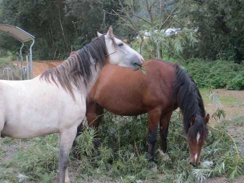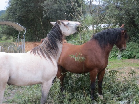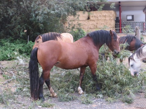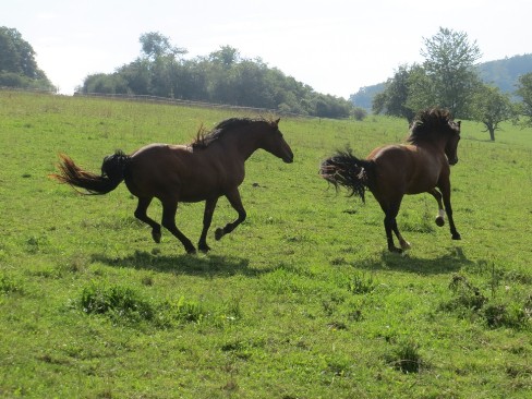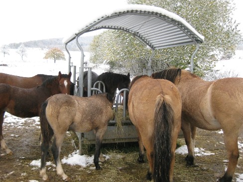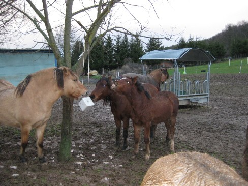 Die neue Pony-Bande besteht aus Skippi und Luna, meinen beiden Norweger-Mixen, Cira und Tochter Ciara sowie Cadou, der Sohn unserer leider verstorbenen Stute Petit Inschuschuna. Zeitweise gehörte auch Cadous Ammenstute Serena dazu.