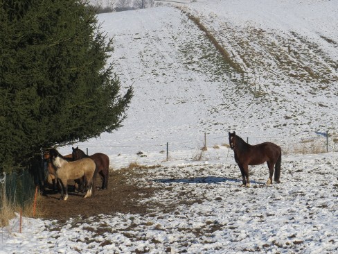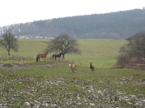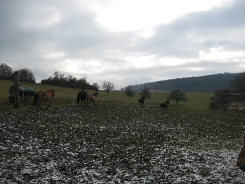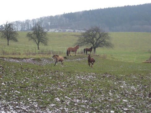 Eine schöne Veränderung in unserem Leben ist, dass wir die Ponys nun vom eigenen Haus aus beobachten können... unsere neue Pony-Bande