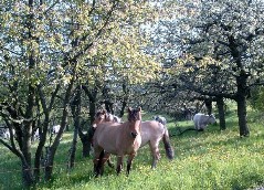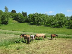Unsere Weiden sind gleichzeitig wunderbare Trainingsanlagen, da sie neben der weitläufigen Ausdehnung auch noch teils starke Steigungen aufweisen. Das ist natürlich gerade für die Jungpony-Aufzucht besonders wertvoll, da so die Muskulatur ohne menschliches Zutun auf natürliche Weise traniert wird.