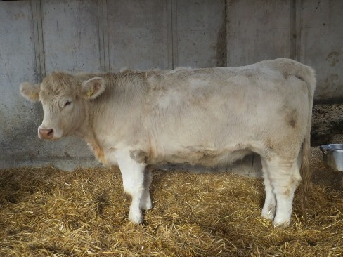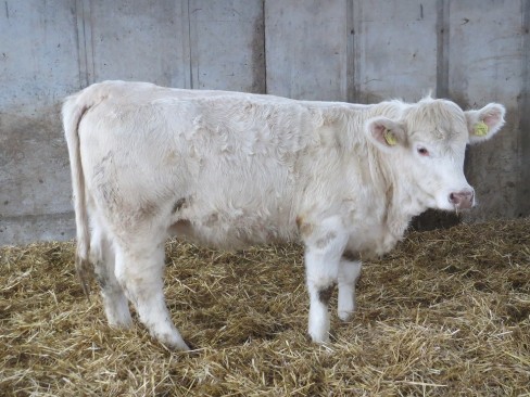 Hanita P ist ein gut entwickeltes Jungrind mit viel Tiefe und Länge. Sie hat einen sehr guten Muskelansatz und gute tägliche Zunahmen. Ein herausragendes genetisch hornloses Jungrind mit einem sehr schönen Charolais-Typ.