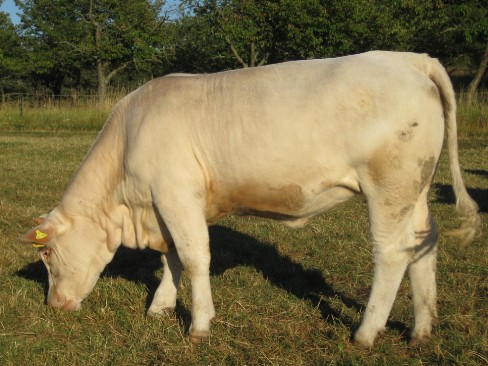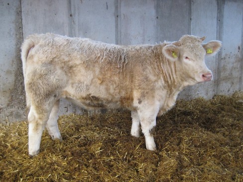 Helene ist eine sehr wüchsige und gut bemuskelte Färse mit sehr guten Tageszunahmen. Sie hat einen schönen Charolais-Typ und ein korrektes Fundament mit ausgezeichneten Klauen.