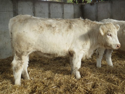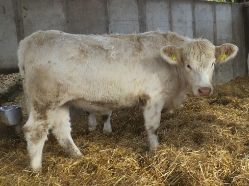Hetja P ist eine genetisch hornlose Färse mit einem besonders schönen Charolais-Typ. Sie hat eine sehr gut angelegte Bemuskelung und sehr gutes Tageszunahmen. Ein korrektes Fundament mit schöner Oberlinie zeichnen diese Noval P-Tochter aus einer Alexis*Nugat-Tochter aus.