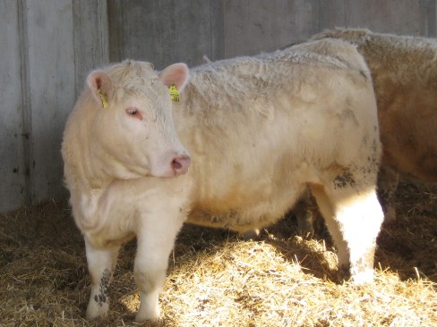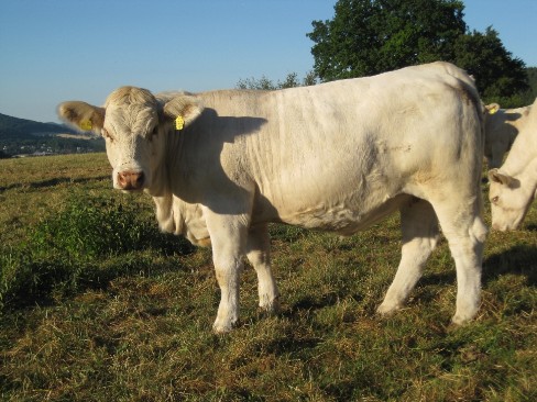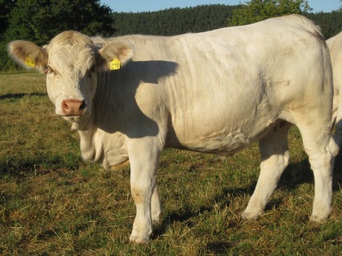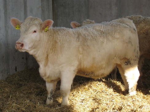 Honey ist eine sehr gut bemuskelte und ausgewogene junge Färse von unserem Zuchtbullen Bison (Verlan * Malais) aus der Zuchtstätte Böhmler. Von dem Bundessieger Alexis (Sohn des bekannten AS-Pik) bekam Honey ein guten Rahmen und ein sehr korrektes und harmonisches Fundament. Honey überzeugt durch viel Breite und hat einen schönen Charolais-Typ.