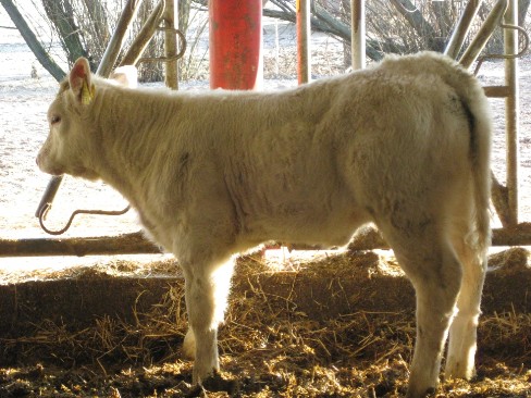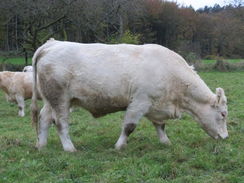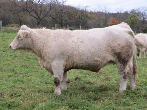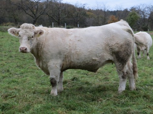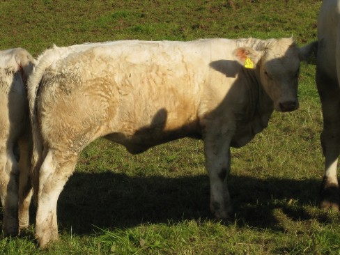 Liera ist eine sehr gut bemuskelte und sehr typische Charolais-Färse vom original französischen Zuchtbullen Bison aus der Zuchtstätte von Francis Böhmler. Sie stammt aus einer Mutterlinie mit sehr guter Milchleistung und stets sehr gut angelegten Becken. Liera hat ein korrektes Fundament, eine sehr gute Bemuskelung und gute Tageszunahmen.