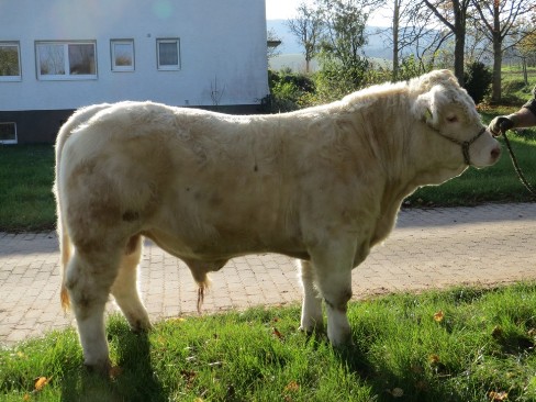 Paradise ist ein sehr typvoller, wüchsiger Jungbulle mit einer sehr guten täglichen Zunahme. Paradise verfügt über eine sehr ausgeprägte und tief gezogene Keulenbemuskelung, er ist über die gesamte Rückenlinie gleichmäßig stark bemuskelt und hat viel Tiefe. Seine Abstammung beruht komplett auf bewährten französischen Besamungslinien. Väterlicherseits stehen Pinay und Malicieux. Die Mutter ist eine Nestor (von Natur ) -Tochter mit excellenter Bemuskelung. Paradise ist wie Vater und Mutter sehr ruhig und ausgeglichen. Er hat ein korrektes Fundament.