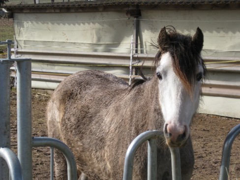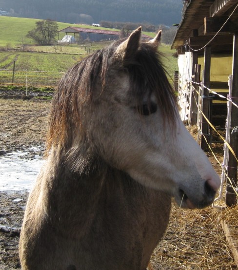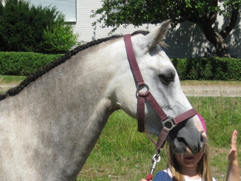 Nach dem Winter haben wir Schuna mit dem Hänger vertraut gemacht, seitdem fährt sie häufiger mit zur Halle. Neben Bodenarbeit, bei der sich Schuna äußerst gelehrig und sensibel zeigt, haben wir mittlerweile mit Schunas siebenjährigem Pflegemädchen angefangen die süße Maus zu reiten. Schuna erweist sich als völlig unkompliziertes und äußerst braves Pony.