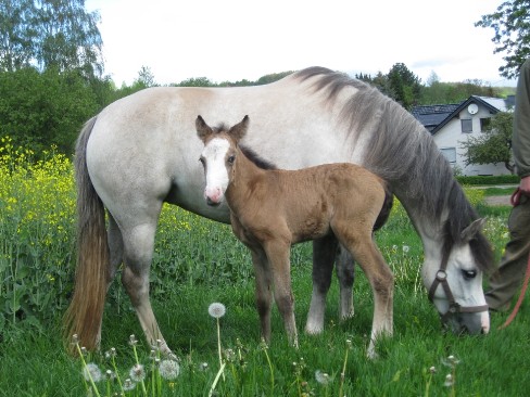 Am 08. Mai 2012 wurde ihr erstes Fohlen ZD Cadou geboren, ein wunderschöner und gesunder Buckskin-Schimmel Hengst mit tollen elastischen und raumgreifenden Bewegungen, wir sind sehr gespannt auf seine weitere Entwicklung.